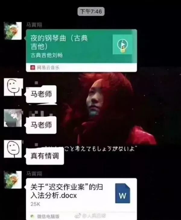 原标题:【爆赞】大学生迟交作业,80后法学教师的回复火遍“朋友圈”!