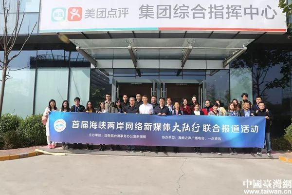 首届海峡两岸网络新媒体大陆行联合报道团在美团点评总部合影。(中国台湾网 陈佳慧 摄)