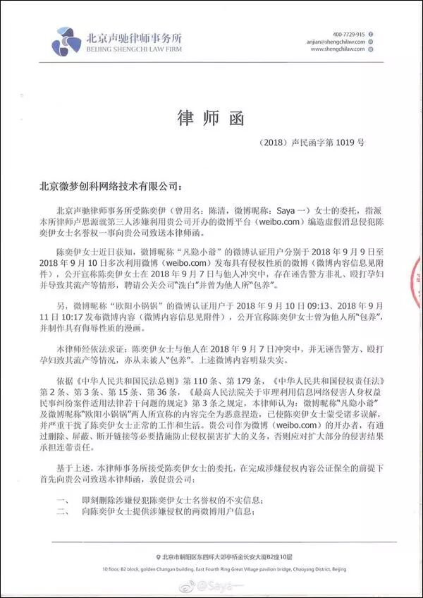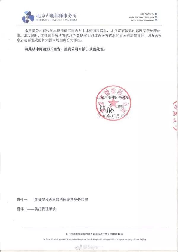 但对于造谣传谣的恶意中伤者,Saya则表示不会就此忍气吞声,将会诉诸法律维护个人声誉,并在文末附上了律师函文件。
