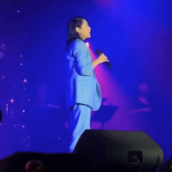 她刚唱到“该隐瞒的事总清晰……”,停顿了2秒准备酝酿情绪接下一句“千言万语只能无语”,嘴还没张开就被台下的一位粉丝截胡抢先大声唱出了这句。
