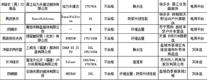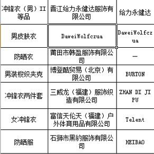 冲锋衣抽查合格率不到八成