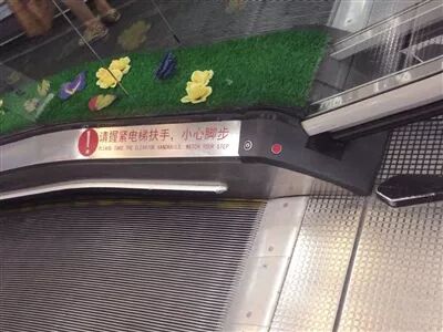 自动扶梯的扶手槽容易夹手,不要乱放: