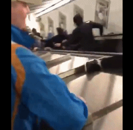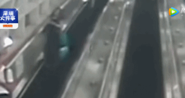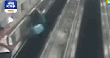 今年4月,深圳北站也发生过一起事故,在一台下行扶手电梯上,一名女子的行李箱突然失控砸下,扶梯前方的乘客被行李箱砸到后身体向后倒,后脑勺砸在了电梯上!