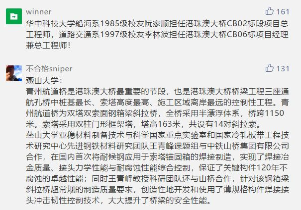 网友们也纷纷留言,分享大桥背后的母校和校友风采: