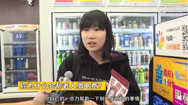 包装封面底部的二维码,只要扫一扫便能帮这位老人缴电费,老人就不用跑到几十公里远的电费厅缴费,用很少的钱就能给老人非常实质性的帮助。 拆开零食包装,里面并没有吃的,只有一张小卡片,写着老人的“人生忠告”。这样没有零食的电费零食,这样明摆着“上当受骗”的交易,真的会有人买单吗?藏在零食架里的摄像头记录下了每个顾客的真实反映,却没想到暖哭无数人。 刚开始,顾客走进便利店,看到货架上的电费零食时,有人好奇,有人驻足观望,有人迟疑,但更多的人在明白这件事背后的善意后,主动扫码为老人出一份力。 一对年轻情侣 通过扫码给老人缴了3元的电费,从零食包里拆出一个卡片,上面写道:“喜欢谁就去追,情书不会写让你妈帮你”。旁边的女朋友打趣道:“你都没有给我写过”。 一位男士,看到扫码能帮老人缴电费,主动问店员:“这个扫码缴电费只能缴两块钱吗?能缴多一点吗?”然后又多缴了10元电费。 一个路边的清洁工阿姨看到这个活动后,也想为老人们捐献一点爱心,但是因为自己的手机是老款,不能扫码,她就请旁边的顾客帮她扫码,给老人缴了20元电费。 一对老夫妻看到零食包上的说明后,也深受感动,主动拿起手机扫码为老人缴电费。 一个男子在给老人缴完费之后,询问店员可以拿走这些零食袋吗?就抱走了货架上的零食包。里面没有吃的,只有封面上的二维码,他拿去能干什么呢?或许他会带着这些零食包给更多的人,呼吁身边的人一起加入到这项活动中来。 这样看似“吃亏”的买卖,竟然大受欢迎,开架当日有121包零食被带走,72人为老人买单。 而零食包里一张张写着“人生忠告”的卡片更是融化了每个善良的人。一位缴完费的女孩拆开零食包后,卡片上写到:“你挂了你的公司也不会倒闭,你家会。”世界没有你照样转,但是你对于家人来说,就是整个世界,照顾好自己,你平平安安就是家人最大的福气。 那对老夫妻拆出来的卡片上写到:“人这一生不像做饭,不能万事俱备再下锅。”人生总是经不起耽误,想做的事情就趁早去做,很多时候慢一步也就晚了。花开堪折直须折,莫待无花空折枝。 一对母女拆开一包零食后,看完小卡片之后,母女相视一笑,然后女儿主动给妈妈一个大大的拥抱。 人们好奇,卡片上写的什么,只见上面写到: “如果此刻你身边有人陪你,帮我抱抱她,因为我想抱的人,已经抱不到了。” 给爱的人一个拥抱吧,趁还来得及,你不知道有多少人想要一个拥抱却再也没机会了。而这个活动的发起者是一名大学生小毛,去年她去内蒙的时候,发现有些老人缴电费特别麻烦,经常家里黑漆漆的,给正常的生活带来了很多不便。 她看到很心疼,想到现在人们可以直接用网络缴电费,能不能做一些有意义的设计,让更多的人知道这件事,为老人做一点事情。看到电费零食这么受欢迎,能感受这座城市带来的满满善意,因为一群人,温暖一座城。当被问到买电费零食的人为什么愿意帮老人缴电费时,有人说:“因为这个是一个公益事业,而且老人们付电费很不方便,所以我们就帮他付一下。” 还有人说:“尽自己的一点力帮助一下别人是很好的事情。”很朴素的话,却很真诚。