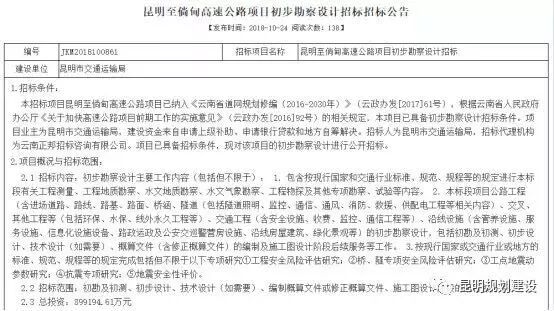 10月24日,昆明市交通运输局发布《昆明至倘甸高速公路项目初步勘察设计招标》公告,对该项目的勘察设计进行公开招标。昆明至倘甸高速公路总投资将达89亿余元,预计2020年建成通车后,最快半小时就能到倘甸。