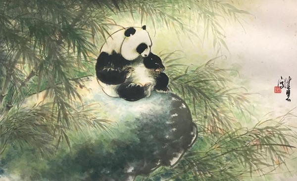 陈佩秋先生是六大家中,硕果仅存的一位,今年九十有六。我与佩秋先生相识近一个花甲,作为小辈的我心里总有一个“谜”:她在上海滩熏陶了大半个世纪,却依旧保持着原先的本真——光明、率真、刚正。她那“弄堂里扛木头——直来直去”的性格,无碍于艺坛对她人格及画艺的推崇和敬佩。这可是海上画坛罕有的风景。这谜底,我私忖当是缘于沉甸甸的两字——实力。 陈佩秋《熊猫》