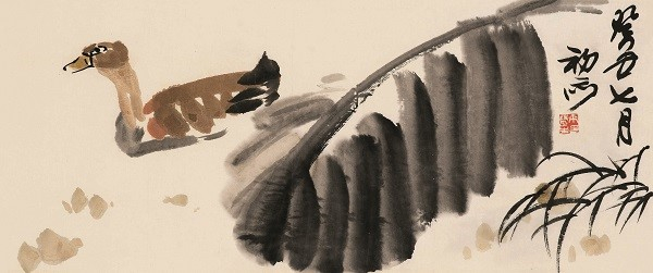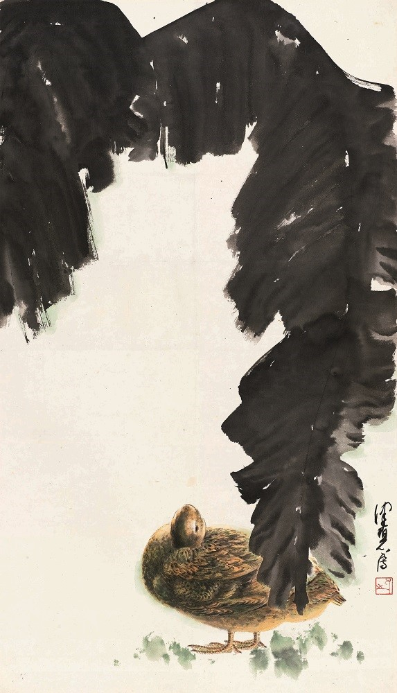 来楚生先生沉静、朴实且有些许狷介,书画印三艺皆擅。记得一九七三年趋其府上,先生审视了我的印稿,讲了两句鞭策的话,即说:“你的印跟我是两路的。”随后他话题一转:“唉,写字、画画、刻印,刻印最难。有些人刻了一辈子的印,都不知道刻印为何物!”曾经沧海难为水,对先生的宏论,在四十五年后的今天,我似乎有了更真切的体悟和认同。 来楚生《芭蕉鸭戏》