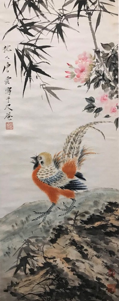 谢公本色是学人,识见高远。上世纪八九十年代,书画家迎来了千载难逢的“甜蜜期”。他却毅然搁下画笔,担任国务院古书画鉴定组长之职,前后八年,不辞辛劳,一无报酬地辗转东西南北,甄别公家书画藏品何止数百万件。嗣后,精印出版的二十四大册皇皇巨著《中国古代书画图录》,即是他和同仁们的传世伟绩。吾师胸中有大乾坤,为画史艺坛立了大功德,做了大贡献。 唐云《锦鸡图》