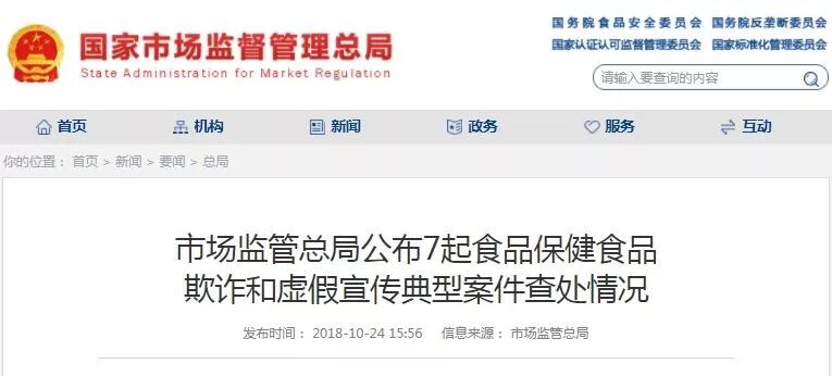 按照国务院食品安全办《关于继续做好食品保健食品欺诈和虚假宣传整治工作的通知》(食安办〔2018〕7号)的要求,各地持续推进食品保健食品欺诈和虚假宣传整治工作,加大案件查办力度,严惩违法违规行为。国家市场监督管理总局近日将各地查处的7起典型案件公布如下: