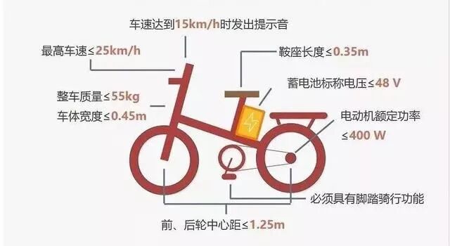 新标准规定电动自行车前、后轮中心距不得超过1250mm,车体宽度不得超过450mm,还必须防篡改。