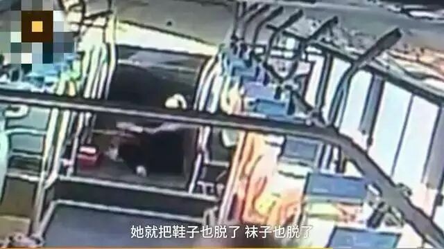在小女孩和爷爷奶奶走了之后,这位中年女子又开始耍无赖,坐在车厢内将鞋子和袜子全脱了,称自己火车被耽误了,让公交司机赔偿她车票钱。