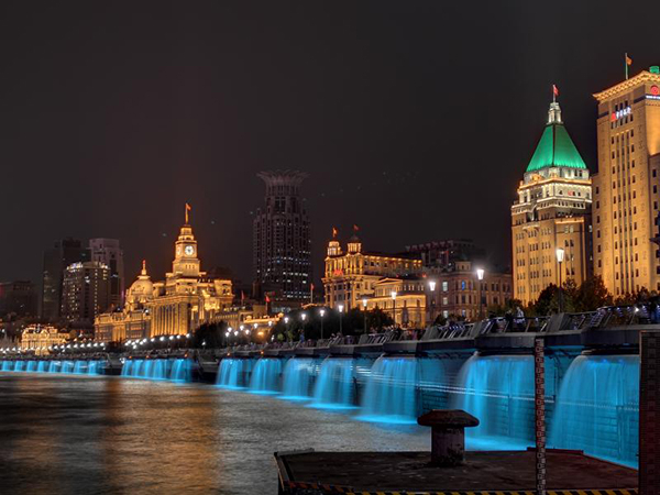此外,有关部门还增加了外滩纵深建筑顶部和与外滩相连道路的灯光,烘托万国建筑博览群的经典;延续和扩展了外滩原有瀑布灯光,并且实现了光色可变,增加了点状可动态变化灯光,丰富了外滩夜景的层次,达到远观有气势、近看有气质、细读有故事的效果。
