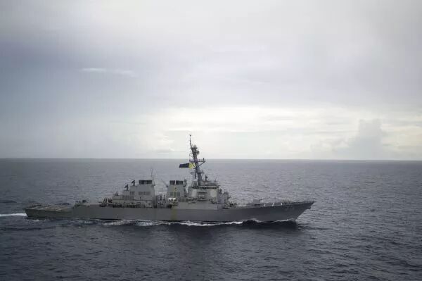 ▲美国海军“迪凯特”号导弹驱逐舰在南海航行。