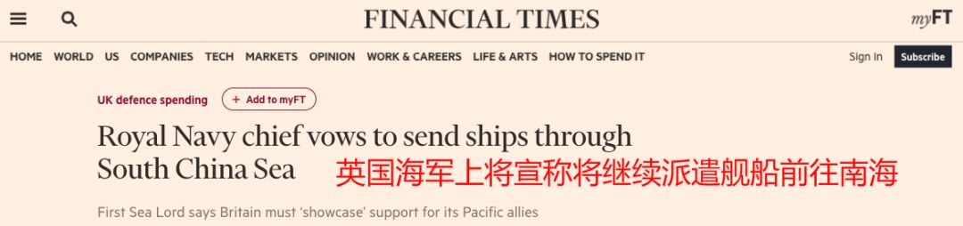 “尽管中国表示这是挑衅行为,但英国将继续赴南海行使‘航行自由’权。”这是英国第一海务大臣菲利普·琼斯上将近日接受《金融时报》采访时说的话。