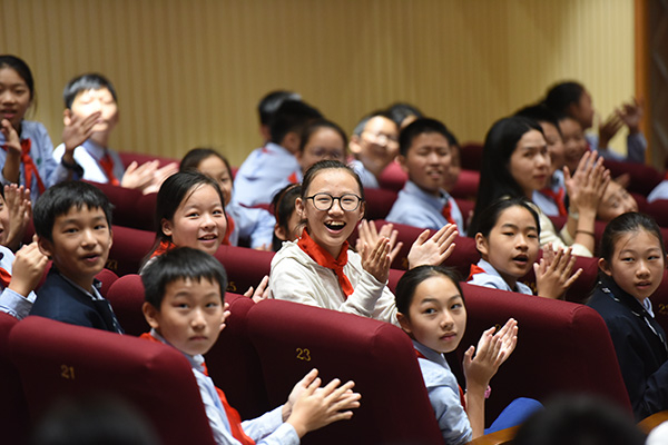 面对台下的小学生们,黄豆豆一下想到了自己的童年时代。