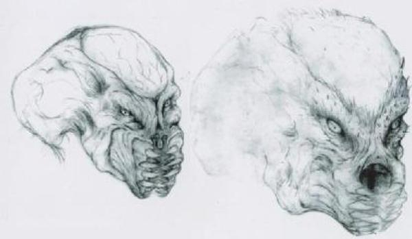 温斯顿接受项目后,画出的铁血战士最初形象草图
