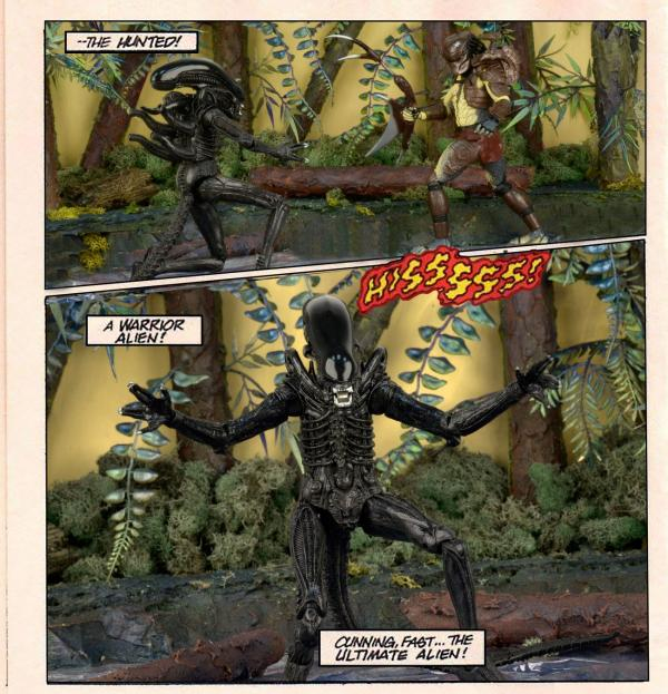 再说铁血战士那一块,又分成暗黑和丛林两派势不两立的铁血战士,反正不管怎么斗来斗去,铁血战士的成年仪式就是要猎杀一个异形。