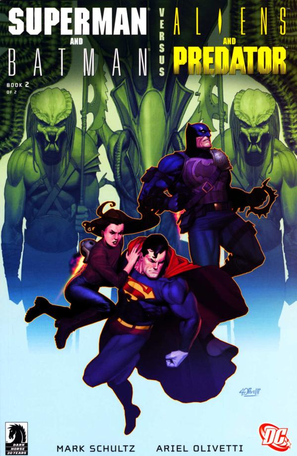 铁血战士的跨界之旅在漫画层面走得更远,2007年,DC与黑马联合推出了《超人和蝙蝠侠对决异形和铁血战士》(Superman and Batman versus Aliens and Predator)↓↓↓