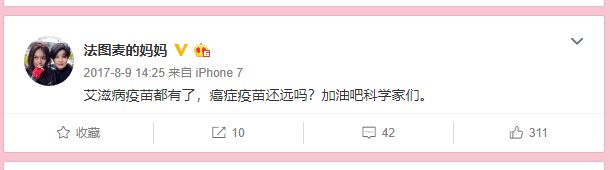 去年8月份,妻子哈文还曾发文希望科学家们能研发出癌症疫苗,可惜......
