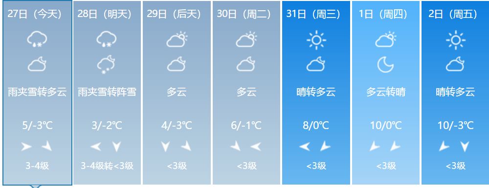 大兴安岭、黑河阴有小到中雪,局地有中到大雪,伊春、齐齐哈尔、绥化、大庆、哈尔滨、鸡西东部阴有雨夹雪或阵雪,其它地区多云。