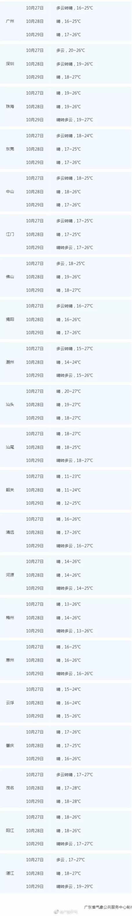 值得注意的是28日粤北地区最低气温11~15度,29日最低气温12~16度。