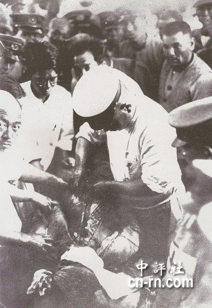 雾社事件中日军使用毒气弹屠杀抗日民众 图为日本军医堀川当场解剖尸体,检查毒气弹的杀人效能 图片来自中评社