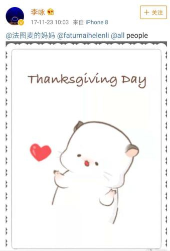 今年5月3日,哈文晒出图片为李咏庆祝生日。2017年感恩节时,李咏发布一条微博,感谢了妻子和女儿,哈文也在下面评论:感恩节快乐。