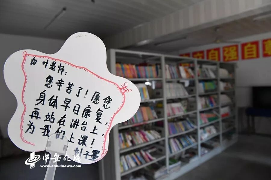 叶老师生病了,学生悄悄在“留守儿童之家”阅览室写下祝福语。