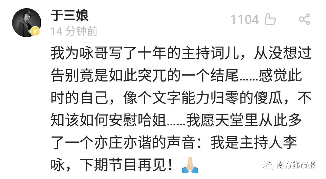 陪伴一代人成长的李咏离开了这个世界,大家再也看不到他主持的节目、听不到他的笑声了。