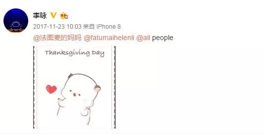 李咏的最后一条微博,停留在 2017 年 11 月 23 日,感恩节。