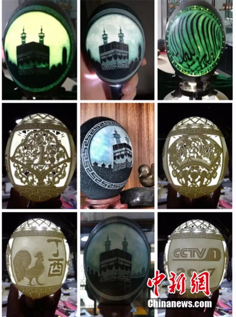 如今,杨星国是世界蛋艺术协会特邀会员,也是甘肃省工艺美术协会会员,他将砖雕、木雕、葫芦雕刻的图案和雕刻技法成功融为一炉,开创河州蛋壳雕刻工艺,他让蛋雕这门“脆弱”的艺术烙印上河州文化记忆,令四面八方的游客叹为观止。