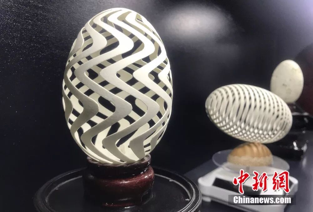 热爱蛋雕的杨星国并不满足只在鸡蛋壳上创作,鹅蛋、孔雀蛋、鸭蛋、鸽子蛋、鸵鸟蛋等等,他开始搜集各种各样的蛋壳作尝试。