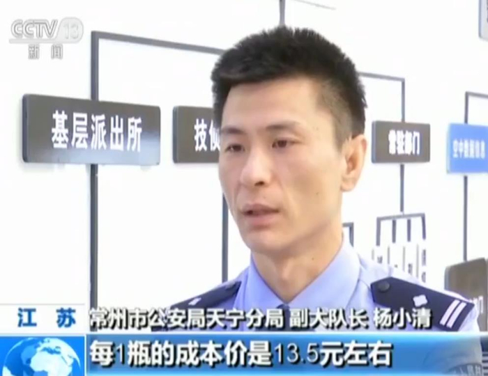 常州市公安局天宁分局 副大队长 杨小清:根据我们取证和审查财务采购和东鼎公司上渠道的生产厂家,进行他们的产品的成本核算,其中国泰同康每1瓶的成本价是13.5元左右,其他的也都在10元左右,但是他们卖给老百姓是398元1瓶,价格1瓶翻了30多倍。