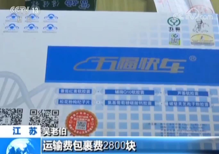 吴老伯:所有这些东西呢运输费包裹费2800块。我想反正也不贵,有这几样东西呢2800块。这里有收据2800块钱,它的章上写的是爱心助老健康工程工作委员会常州工作站。