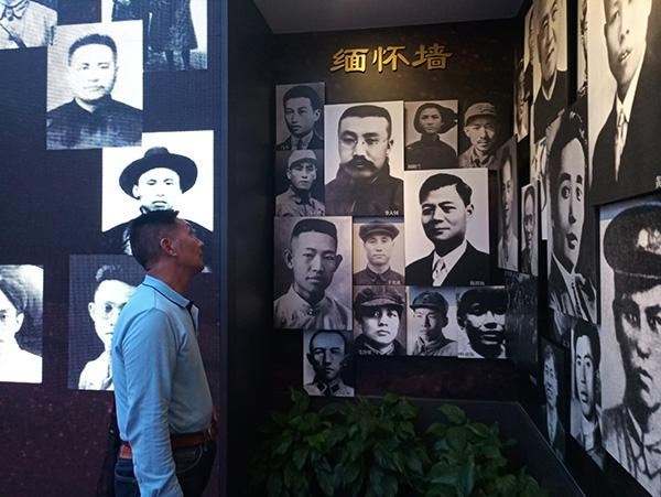2018年10月30日,中共一大会址纪念馆内,施利松参观缅怀墙。