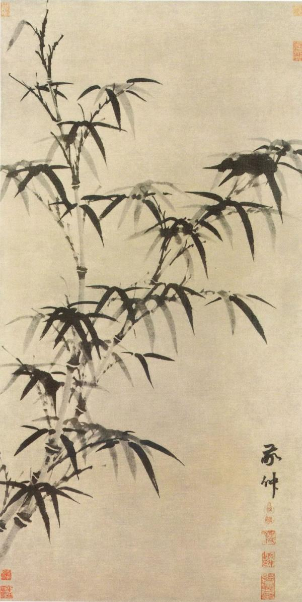从画竹的具体表现手法上,元代李衎在《竹谱详录》中已有明确地阐述,即把画竹分为“画竹谱”与“墨竹谱”两种不同方法。“画竹谱”指的是双钩设色;而“墨竹谱”指的是用单钩的手法以墨写竹。但要指出的是:并非所有用墨画的竹子都属于文同“湖州竹派”所指的“墨竹”。