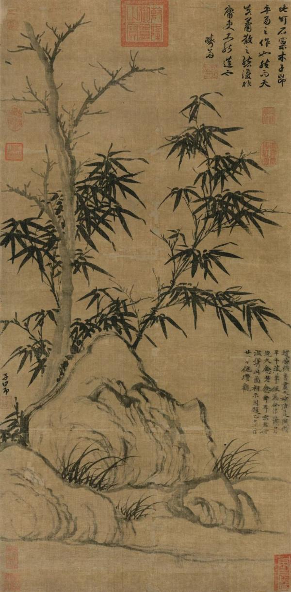 元 赵孟頫 窠木竹石图轴 绢 水墨 台北故宫博物院藏