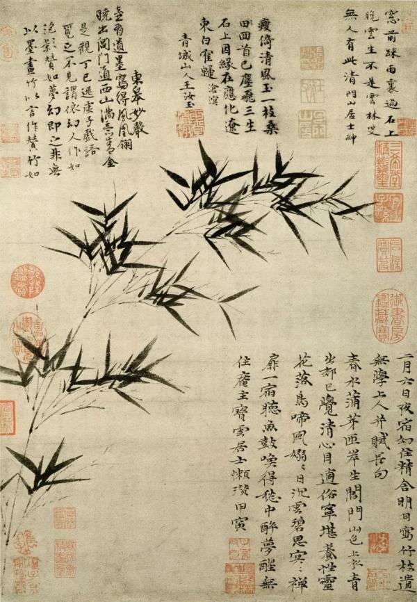 当然,我们在文同存世的墨竹作品中可以看到书法用笔早就寓于其中,特别是在枝条上,但这更多的是一种“潜意识”的运用。画竹用笔中真正提出“以书入画”则是在元代。这种演变是“湖州竹派”进步发展的关键所在,赵孟頫、吴镇、倪云林、柯九思就是其中的代表。所以,元代“湖州竹派”的画家大多善书。