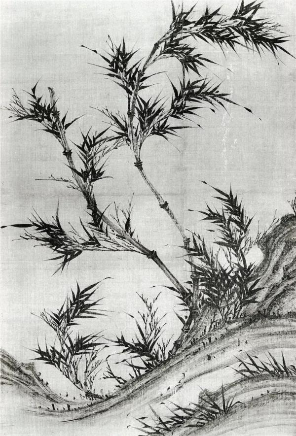 关于中国墨竹的起源之说大概有三种:第一种亦即比较普遍的说法是起于唐明皇李隆基,元张退公《墨竹记》:“夫墨竹者,肇自明皇,后传萧悦,因观竹影而得意”;二说是起于吴道子,元李衎在《竹谱详录》中说:“墨竹亦起于唐,而源流未审。……黄太史疑出于吴道子”;三说是起于五代时蜀国的李夫人,《图绘宝鉴》卷二记载:“李夫人……月夕独坐南轩,竹影婆娑可喜,即起挥毫濡墨,模写窗纸上。……自是人间往往效之,遂有墨竹”。其他类似的说法还不少,可谓众说纷纭,莫衷一是,又缺少实物佐证,传为南唐李颇的《风竹图》,也仍存在着争议。但从实物与文献的综合考察分析,墨竹起源于唐五代之间,应该是可信的。
