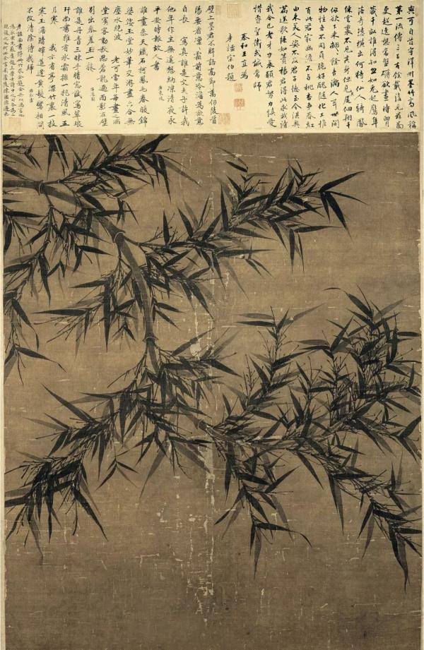 《宣和画谱·墨竹叙论》中称文同为“士人文同辈”,苏轼曾云:“亡友文舆可有四绝:诗一,楚辞二,草书三,画四。与可尝云:世无知我者,惟子瞻一见识吾妙处。”,在苏东坡看来,文同的学问和修养要远远高于他画的竹,文同之所以能画出如此水平和境界的“墨竹”,其根源并不是简单的绘画技法问题,所以陈师曾才会说:“至文湖州竹派,开元明之法门,当时东坡识其妙趣。”。这种认识和表述不仅是文同“湖州竹派”最为重要的特点,从某种角度上来说,它为后来中国“文人画”的兴旺和发展在理论和实践上奠定了基础,其意义和影响是极为重要和深远的。元 柯九思 墨竹图轴 纸本 上海博物馆藏