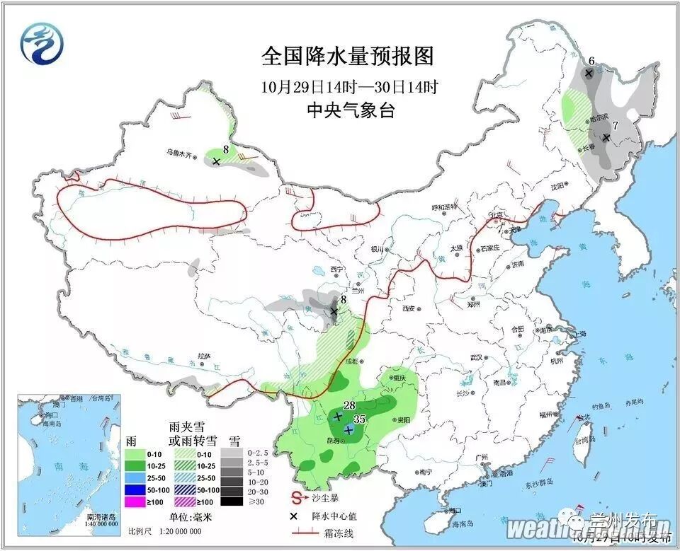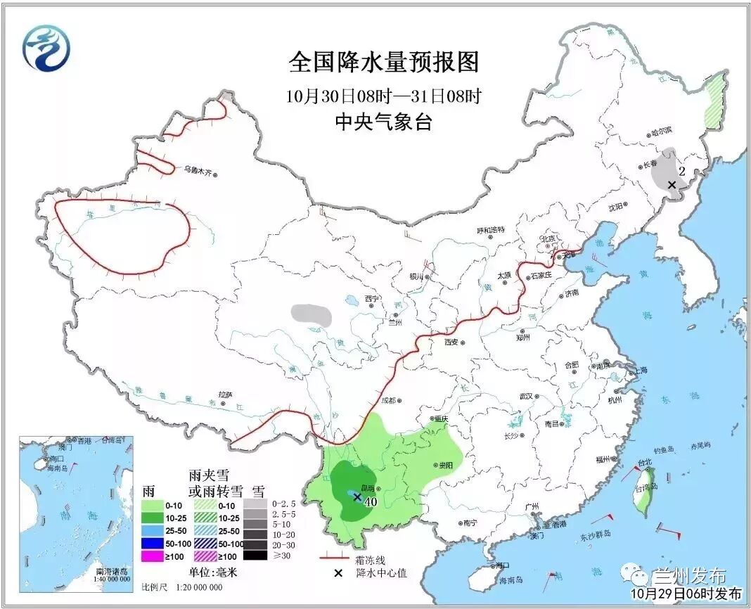 但冷空气一到,天气突变,雨雪光临,随之而来的是降温。10月28日来自兰州中心气象台的消息称,受来自北方冷空气影响,本周周五、周六、周日(11月2日-4日)全省有一次较明显降水降温天气过程,其中兰州市有雨夹雪天气,高温下降12℃。