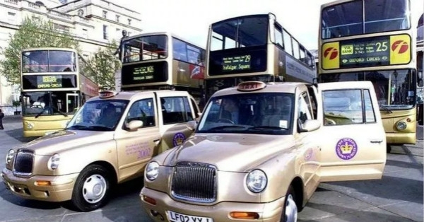 2. 2002年在女王金禧年庆祝盛典上,50辆黑色出租车和50辆红色双层巴士喷成闪闪惹人爱的金色外漆在伦敦街头展出,每一辆车都有单独的编号,代表女王统治过的每一年。