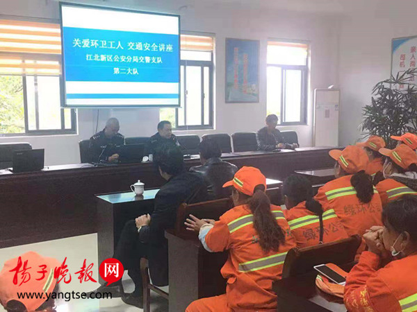 扬子晚报网11月1日讯(记者 梅建明 通讯员 江景轩 房蓓)为进一步增强环卫工人的交通安全意识,强化环卫工人在路面作业时的自我保护能力,远离事故伤害,前天上午,南京江北新区公安分局交警支队二大队副大队长邵琦带领车管民警,走进南京绿环环卫所开展秋冬季道路交通安全培训会议,100多名一线环卫工人参加了此次培训会议。