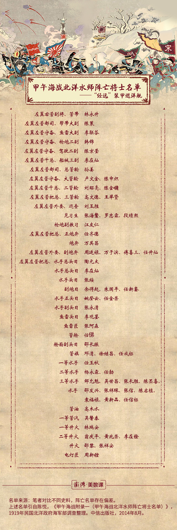 《北洋海军舰船志》对这场海战有记载,书中提到:为背水一战,开战前,“经远”管带林永升下令撤除舢板和连接上下舱的木梯。
