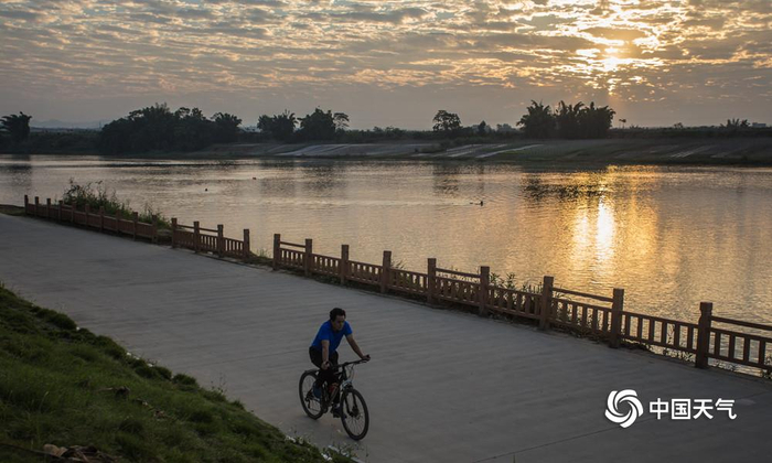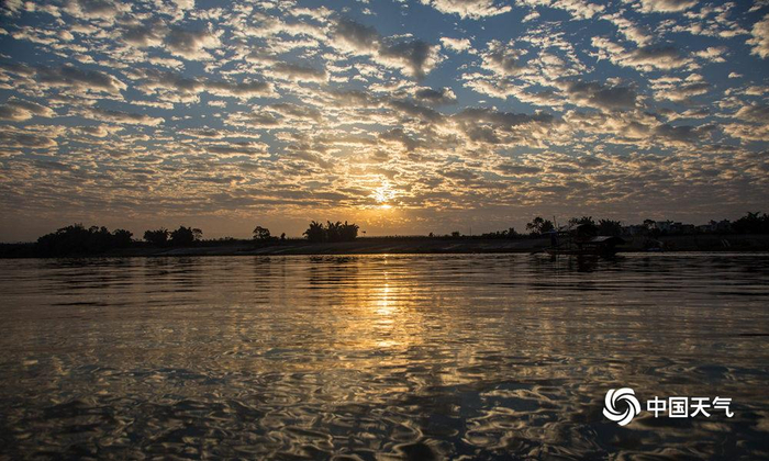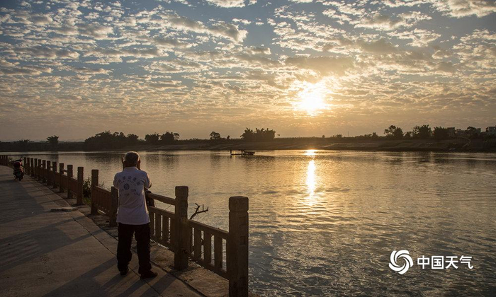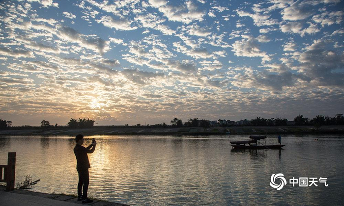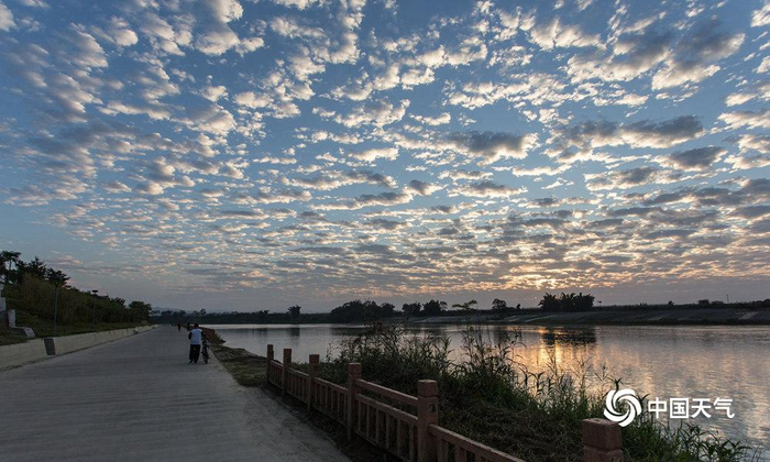 今天(2日)早晨,广西百色市田阳县天气晴好,气温适宜,天空布满了层层叠叠的鱼鳞云,倒映在河面上,场面蔚为壮观,正在晨练的人也禁不住驻足欣赏。(图文/李明志)