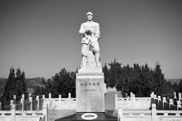 展馆的广场里立着一座刘志丹的汉白玉雕像。就在雕像身后,一条甬道通往不远处的八角纪念亭,穿过纪念亭几十米处便是一处观景台。在通往观景台的甬道上松柏遍植,其中有两株为刘志丹女儿和女婿亲手所种。刘步飞告诉采访团,观景台所在位置就是刘志丹曾经中弹的地方,这里是鏊子山最高点。脚下,黄河一览无余。