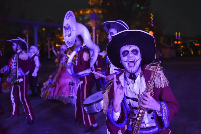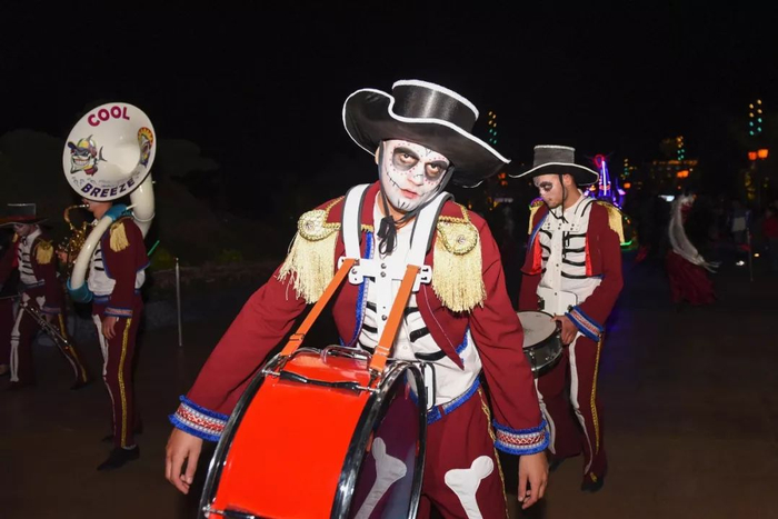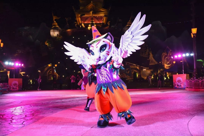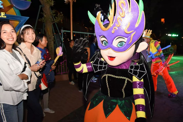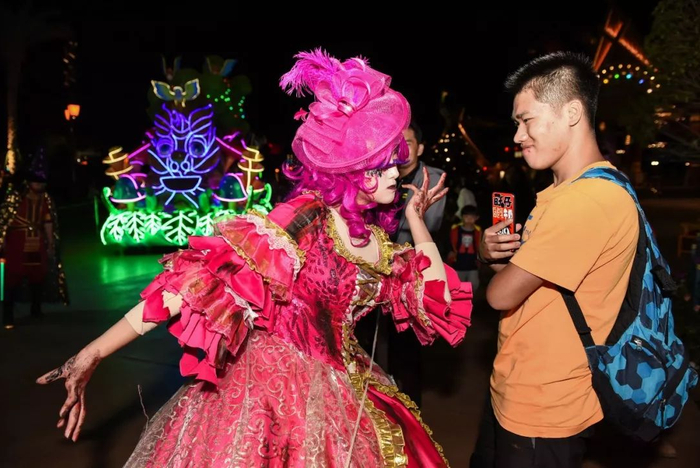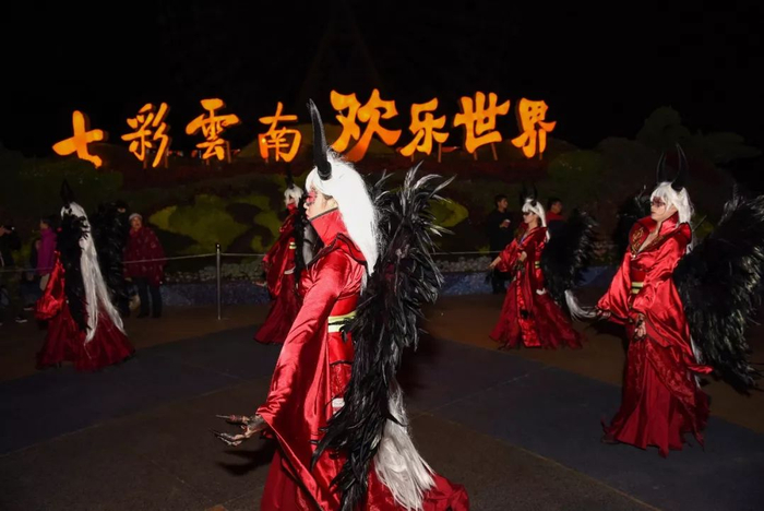 “七彩云南·欢乐世界 整蛊狂欢节”期间,乐园推出了众多奇特梦幻、惊心动魄的主题活动,从白天嗨到黑夜,惊喜不停欢乐不断。来到四季花海分区你可和仙灵相遇,在幻滇奇域分区一群暗黑势力身边萦绕着蝙蝠,在滇军营地分区千年前的“滇军”将“复活”,神秘莫测的洪荒秘境分区则会有半兽人出没,可爱的洋芋人则会恶作剧……夜间幻彩魅影花车大巡游引爆潮玩狂欢高潮。