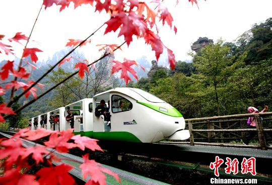 游客乘坐小火车游览武陵源十里画廊景区。 吴勇兵 摄