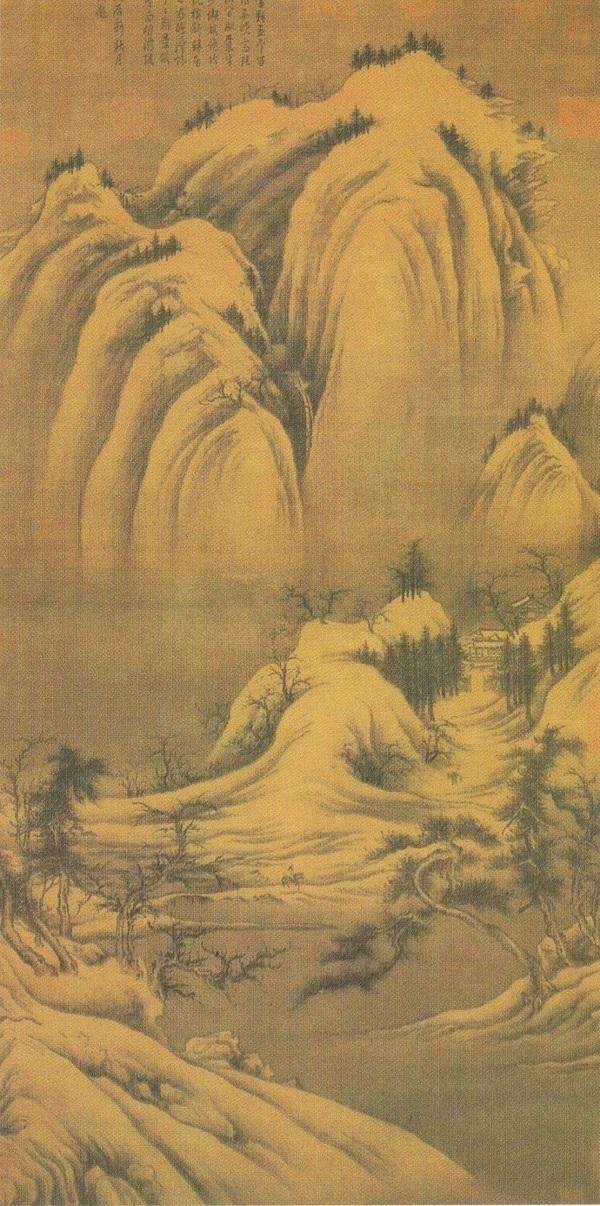 先师江兆申先生在任台湾故宫博物院处处长时,曾对此画图印做了研究并撰写释文(古书画释文释印是一般研究者尤其是西方人最短缺的),明确此画正上方的印是“缉熙殿宝”。这便在时间上确定了《雪景图》南宋早年已入藏宫廷缉熙殿。既被定为殿中“宝”物,常识表明,这件《雪景图》时间上应不会是近期之物,作者也不应是近期常人。这样,基调上已可推定这件《雪景图》当为北宋中、早期人所作,不可能出自南宋,更是完全排除了元人作品的可能性。